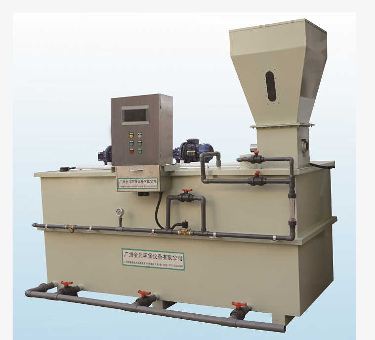 適用于高分子有機(jī)絮凝劑的制備與投加,用戶只需將藥劑干粉直接加入設(shè)備的料斗中,即可實(shí)現(xiàn)全自動(dòng)的投料、溶解、熟化、儲(chǔ)存、計(jì)量加藥等過(guò)程,整個(gè)過(guò)程無(wú)需人工操作,完全自動(dòng)運(yùn)行。設(shè)備采用三槽或二槽式結(jié)構(gòu),分別用來(lái)進(jìn)行攪拌、熟化和貯存。配套設(shè)備主要由干粉進(jìn)料器、投配螺旋、混合器、振動(dòng)器、攪拌器、液位控制儀、供水系統(tǒng)、螺桿加藥泵及智能PLC控制系統(tǒng)組成。