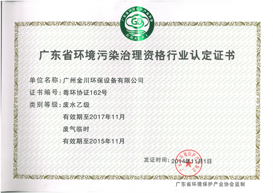 熱烈祝賀我司順利取得廢水乙級治理資質(zhì)證書